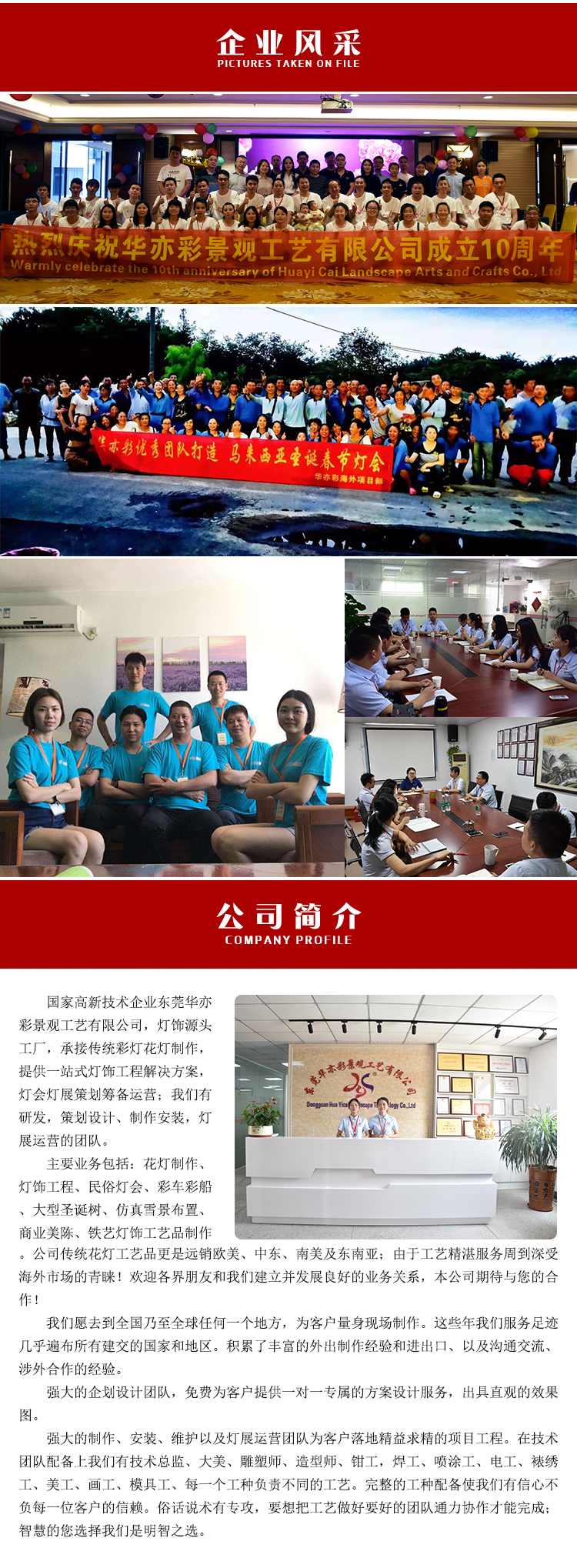 比較好的方法就是去他廠里看看,這個是直接的方法,比如找花燈就直接導航 :東莞華亦彩景觀工藝有限公司