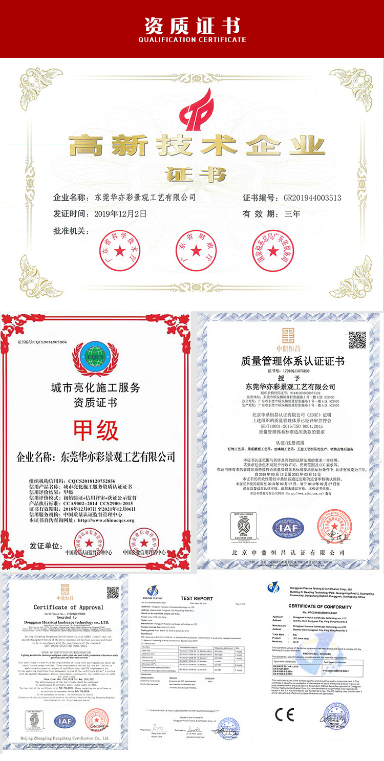 其次看資質:比如華亦彩公司是高新科技企業,城市亮化工程服務施工資質
